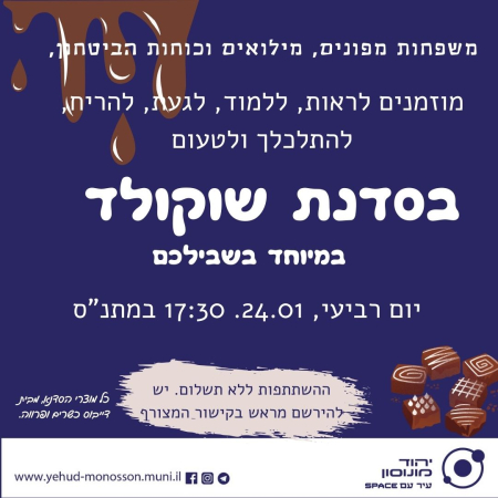 חלוקת ערכת שוקולד מדליקה לחנוכה – 200 ערכות ליצירת סביבונים וחיות משוקולד חולקו למשפחות שנרשמו , פעילות פנאי מתוקה לכל המשפחה .